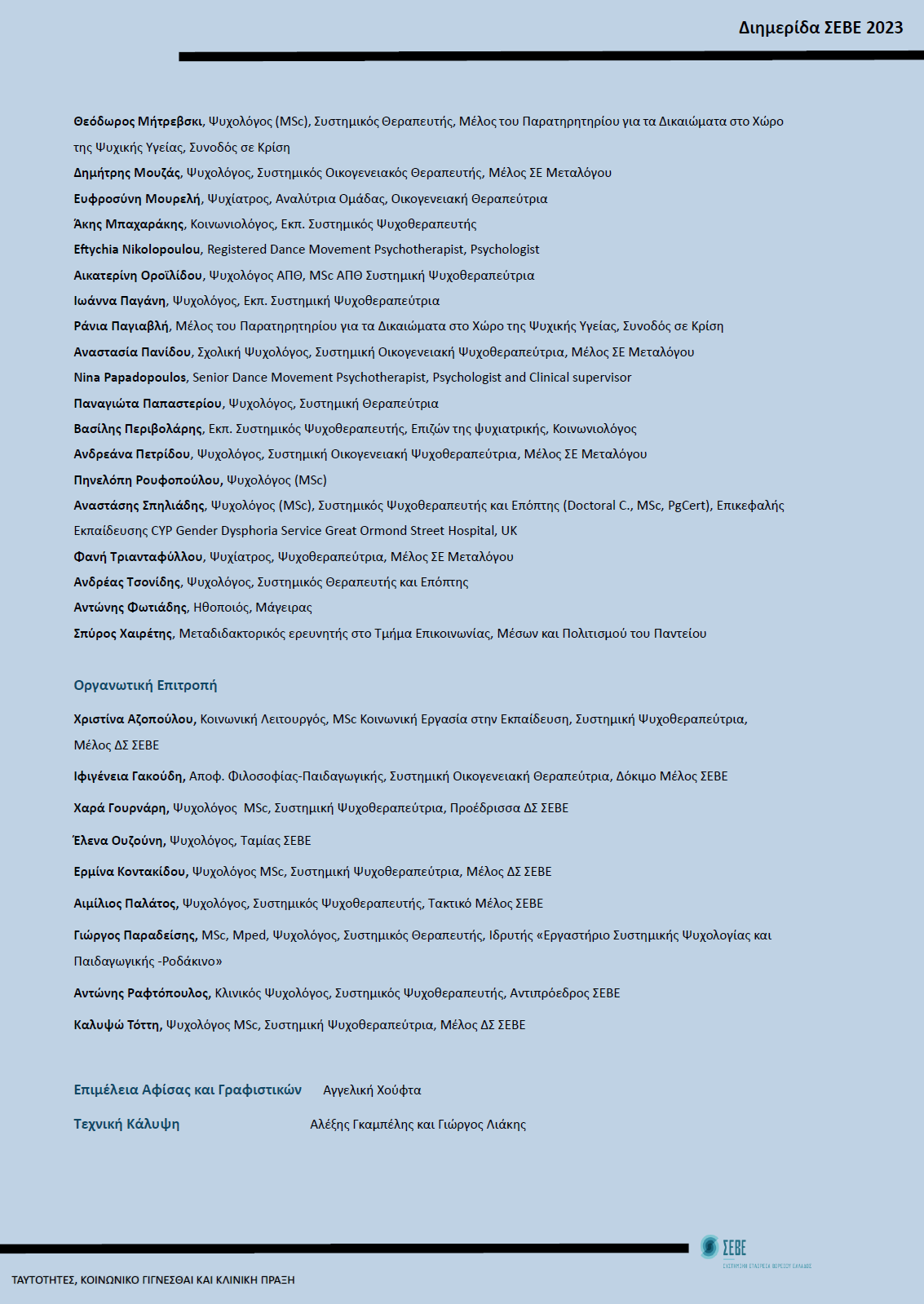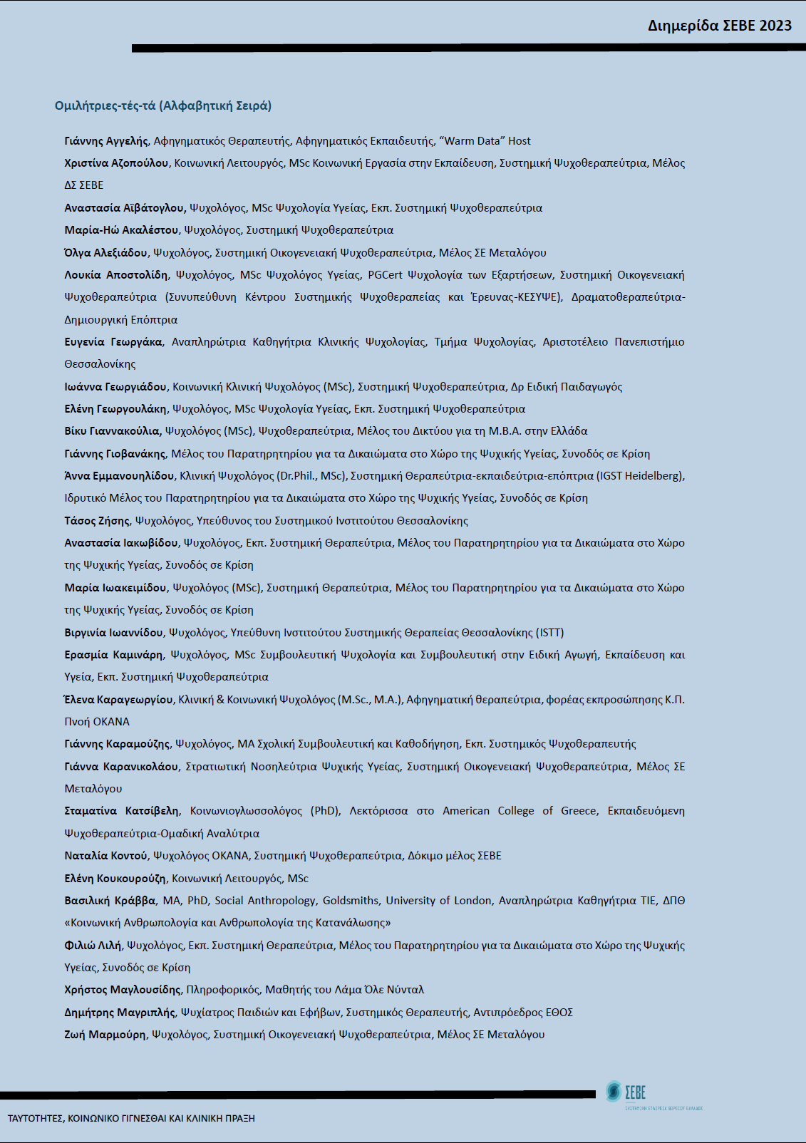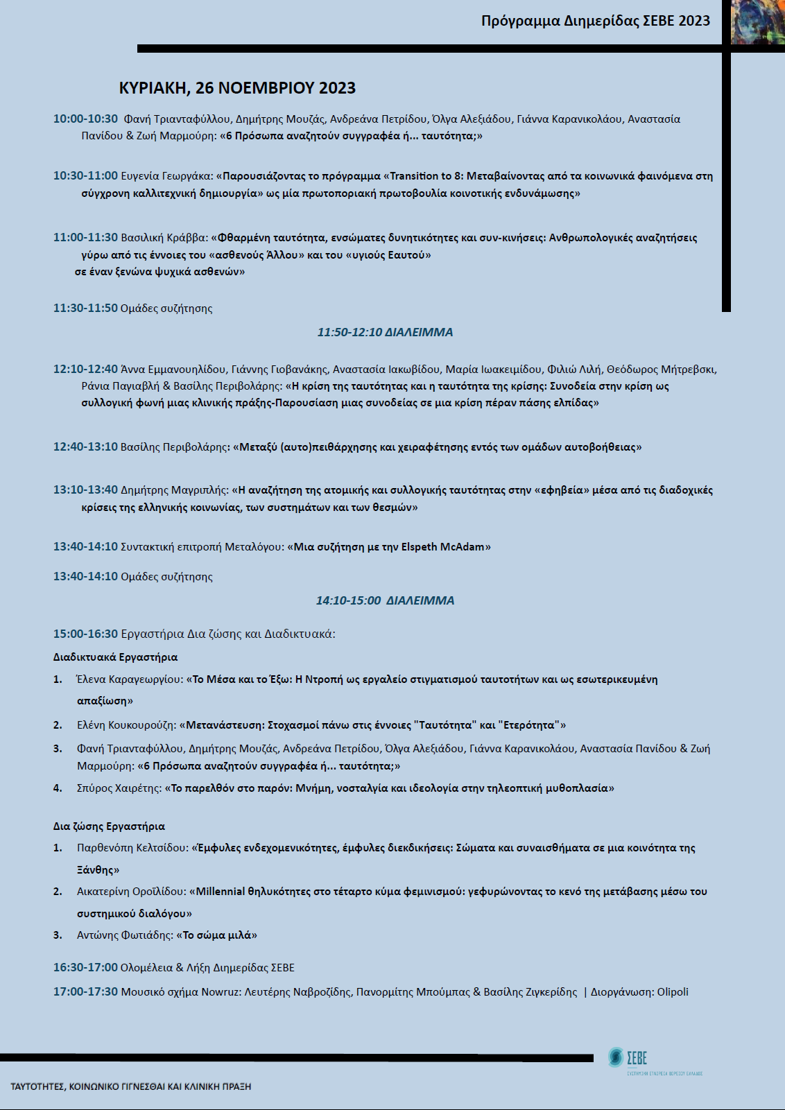 Ταυτότητες, Κοινωνικό Γίγνεσθαι και Κλινική Πράξη | Ετήσια Υβριδική Διημερίδα ΣΕΒΕ 2023