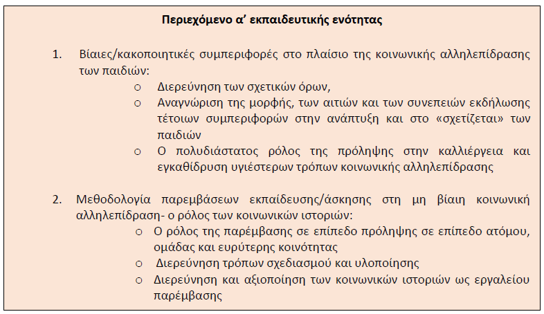 Α’ Ενότητα: Αναγνώριση και άμβλυνση των βίαιων κοινωνικών συμπεριφορών στα παιδιά. Ο ρόλος των κοινωνικών ιστοριών (Παρασκευή 16.00-20.15)